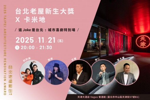2025.11.21(五)20:00-21:30(19:30 開放入場)2025台北老屋新生大獎演出活動 ➔ 天津大酒店 x 卡米地喜劇俱樂部 ✷ 這Joke是台北:笑談城市的前世今生 點我