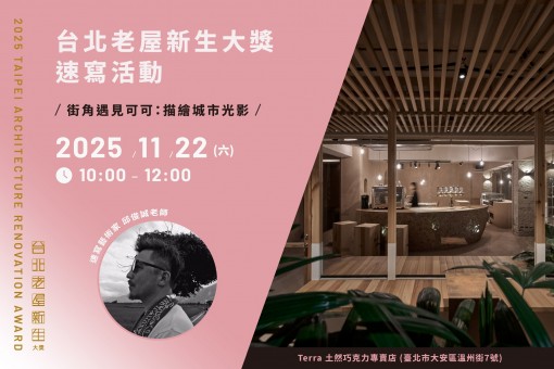 2025.11.22(六)10:00-12:00(09:40 開放報到)2025台北老屋新生大獎速寫活動 ➔ Terra 土然巧克力 x 速寫藝術家 邱俊誠 ✷ 街角遇見可可:描繪城市光影 點我